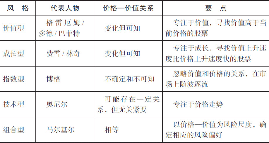 表1-1列出了这五类投资风格的要点。