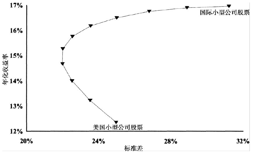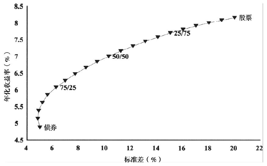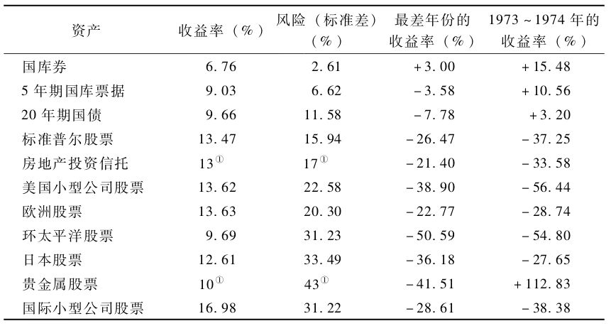 (3)投资组合与构成组合的各个资产的表现是不同的。一个安全的组合不一定要剔除掉高风险的资产,过度依赖安全的资产反而可能会增加整个组合的风险。即使最追求安全性的投资者也会持有一定数量的风险资产,由“安全的”大型公司股票组成的投资组合往往要比由有风险的小型公司股票和现金组成的组合有更低的收益和更高的风险。