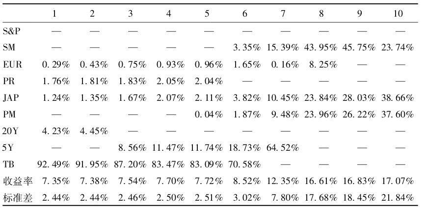 (4)给定的风险程度,有一种投资组合会带来最高的收益。这个组合处于资产配置的有效边界上,不幸的是它的具体位置只有在事后才能知道,投资者在事前找到有效边界的愿望是不可能实现的。聪明的资产配置者要找到在多种情况下的市场表现都能接近目标值的资产配置比例。广泛包含国内和国外的大型公司股票和小型公司股票,并同时包含各种股票资产所对应债券的组合,似乎是最好的。